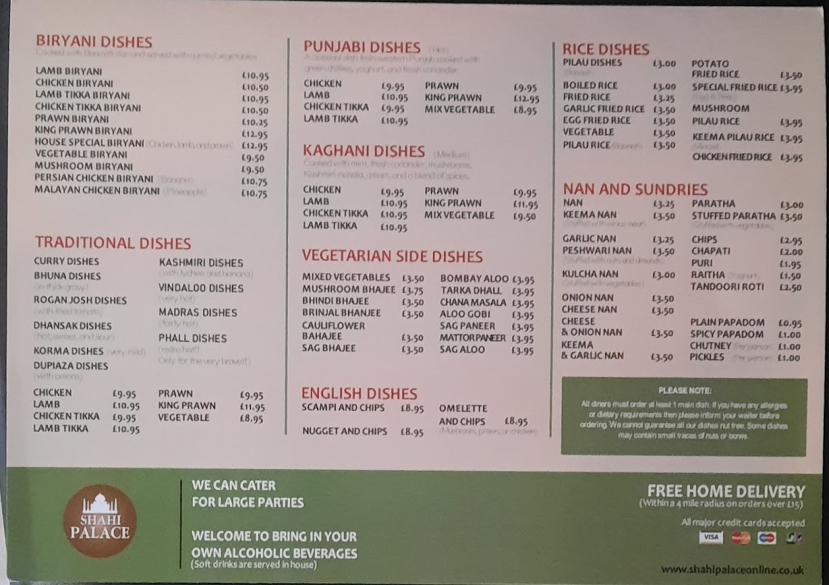 Introducing the menu at Shahi Palace, a hidden gem located on Unicorn Hill in Redditch, promising a delightful escape into the world of Indian cuisine. This vibrant restaurant is renowned for its diverse selection of dishes, offering everything from succulent chicken tikka masala to generous vegetarian options. Guests are greeted with an inviting atmosphere and attentive service, highlighted by generous portions that ensure a satisfying meal for all.